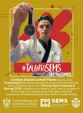 Alumno de la Preparatoria 13 obtuvo medalla de oro en el Habana Open Poomsae & Kyorugi 2024, realizado en La Habana, Cuba